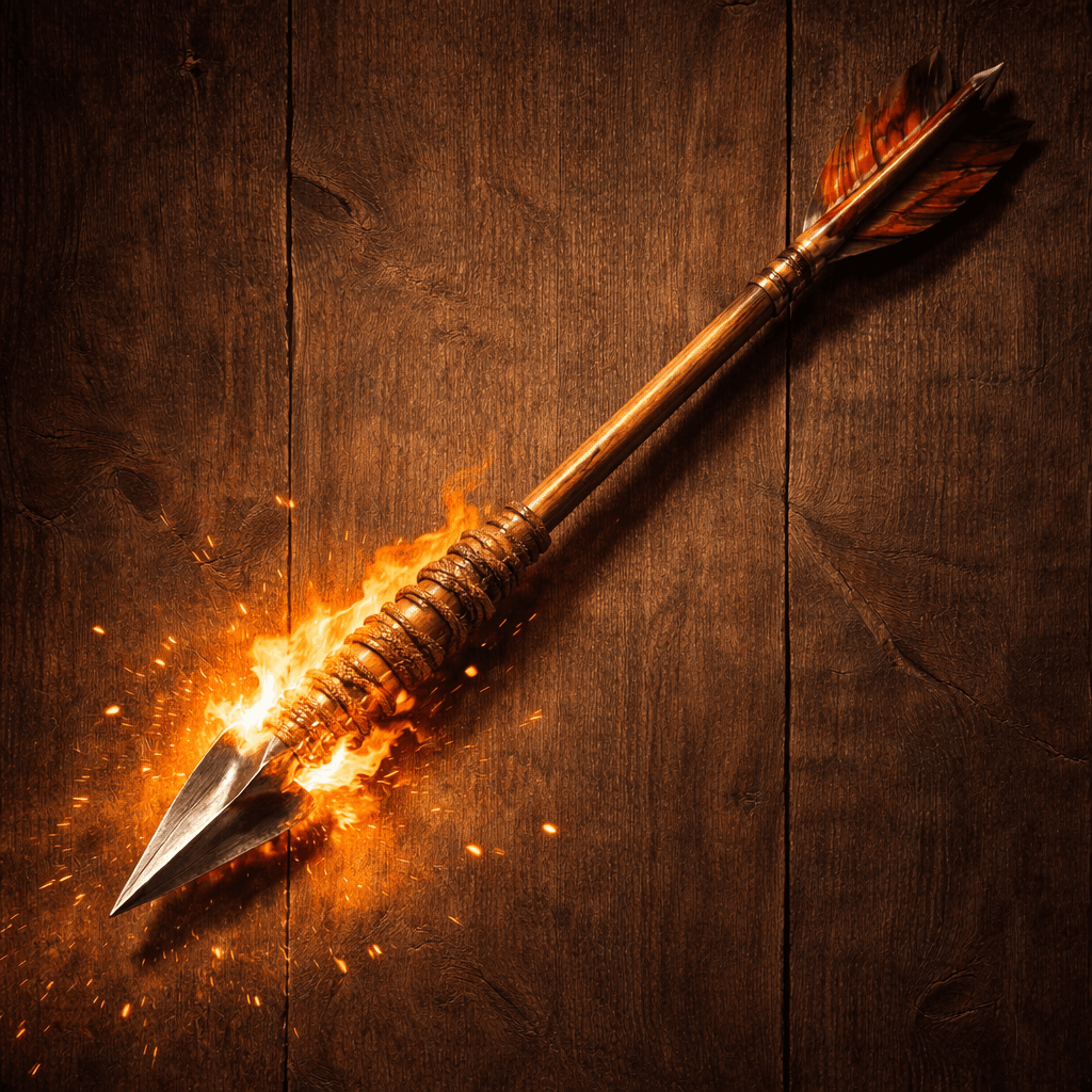 This arrow is tipped with an alchemically treated head that ignites upon impact, releasing a burst of searing flame. Sparks and heat spread across the wound, dealing additional fire damage to the target.
