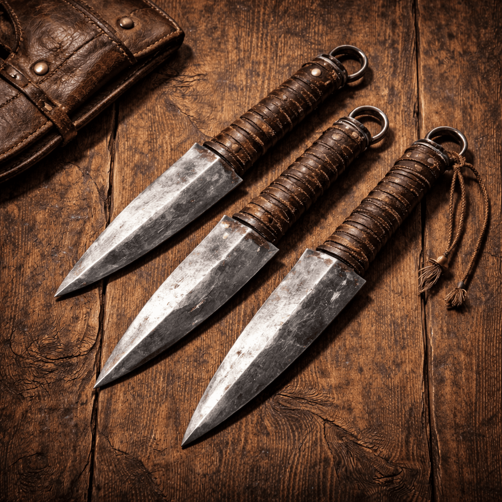 Light weapons designed for throwing rather than melee combat. They have a longer range than daggers but are less effective up close. Effect: Deals 1d6 piercing damage when thrown, or 1d4 piercing damage in melee.