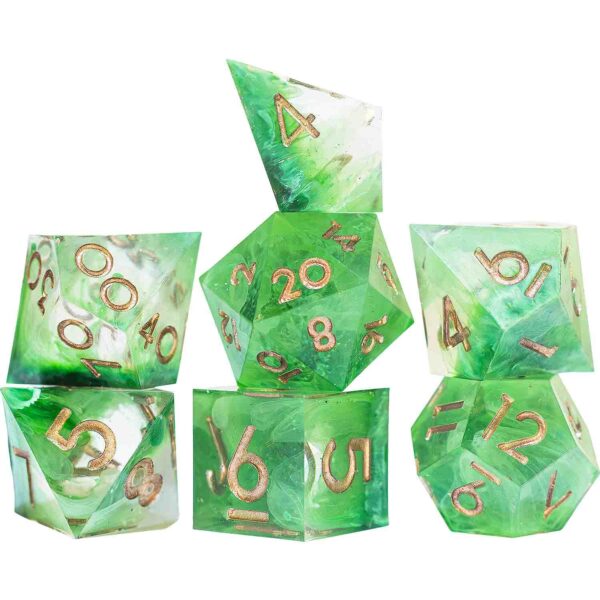 • 7-piece polyhedral set, handmade dice set